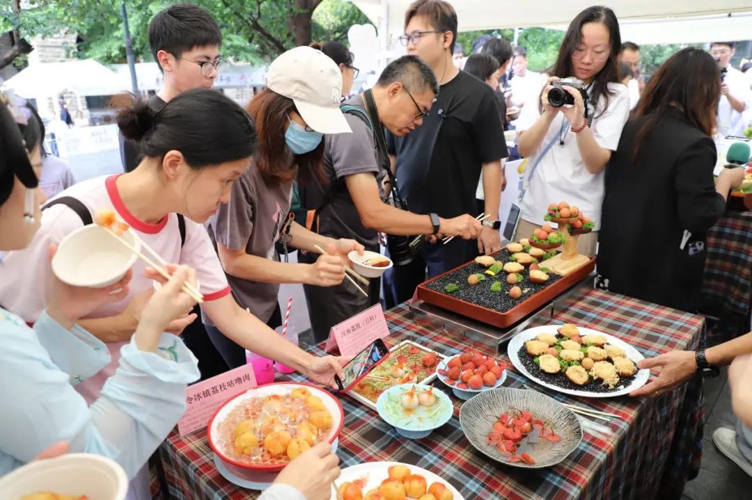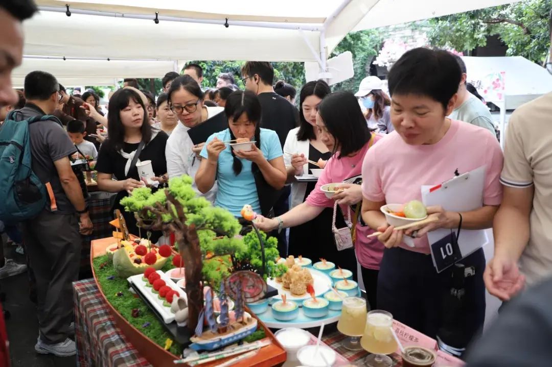 下午,南沙区餐饮行业协会带来“荔枝美食文化厨艺交流会”,吸引不少食客前来一饱口福。数个本地优质餐饮品牌同台竞技,大厨们纷纷拿出“看家本领”,将荔枝融入各种创新菜式,一道道颜值颇高又令人回味无穷珍馐“闪亮登场”,带来舌尖上的岭南风味。“不仅看着养眼,吃着也过瘾。这种结合荔枝做菜的方式太有创意了!”天河区游客李女士表示,这次听说港湾街道开展荔枝市集活动,特意和孩子周末前来,玩得很开心。