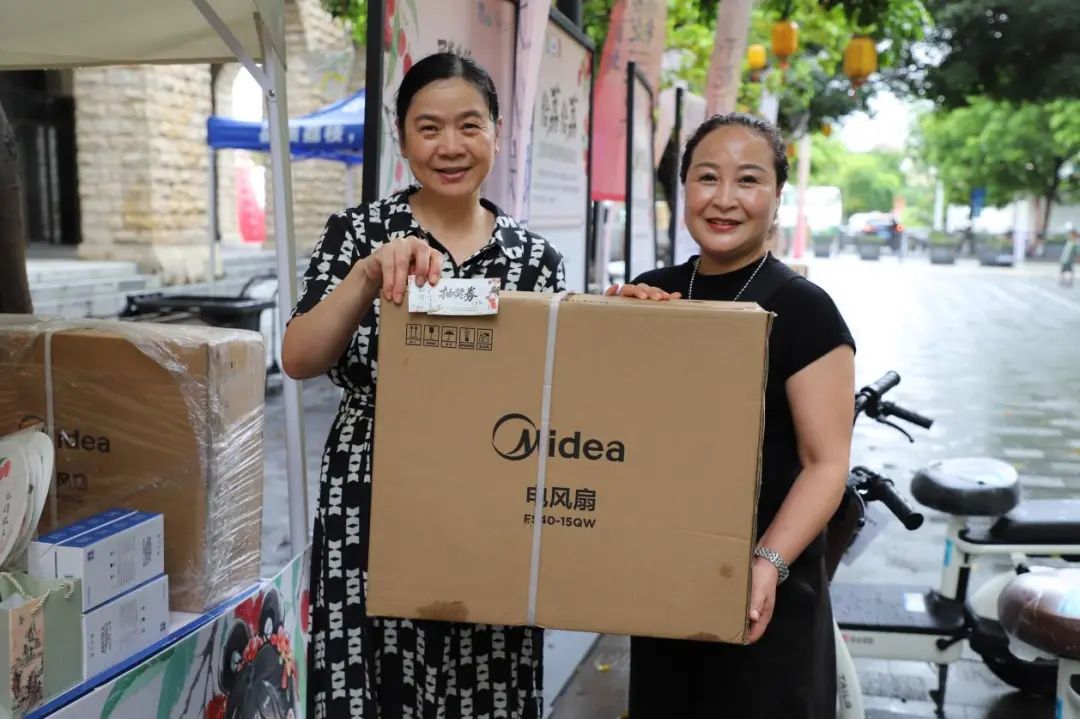 此外,街道还联动辖区内企业开展抽奖活动,不少居民前来一试手气,将各种好礼带回家。抽到电动车的幸运观众肥肠激动,她开心的说:“吃到好吃的荔枝,又抽到幸运大奖,我简直是‘港湾锦鲤’!”
