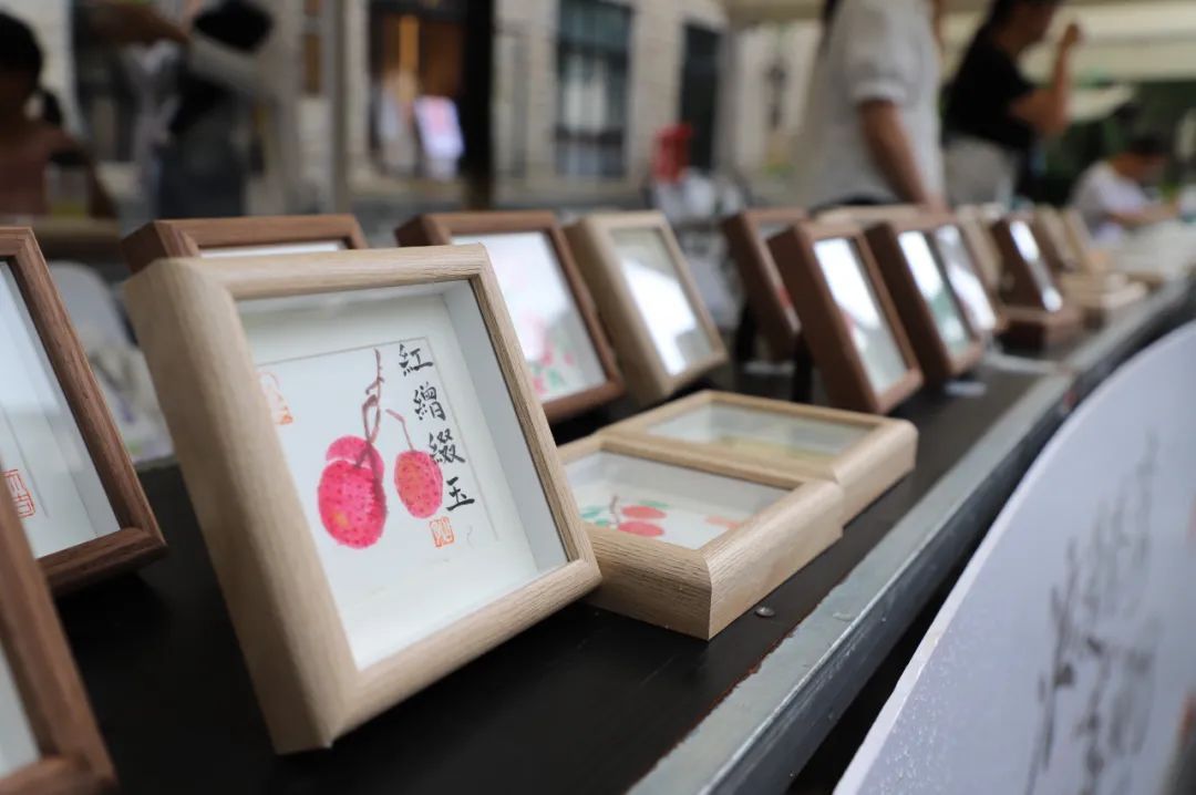 在港湾街道的“文化地标”灯塔图书馆里,由广州市南沙区美术家协会与深度画室共同主办的浪漫港湾·与“荔”同行——美术作品展,也同步开展,一幅幅展现岭南荔枝文化的画作,为活动增添浓厚文化氛围。